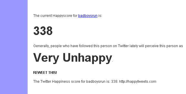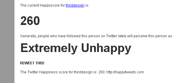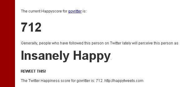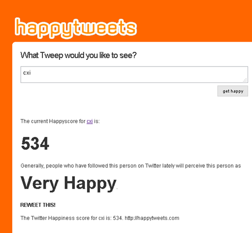 Are you a happy tweeter? How can you tell? HappyTweets is here to actually give you a ranking along with a color coded soothing feeling to the situation!