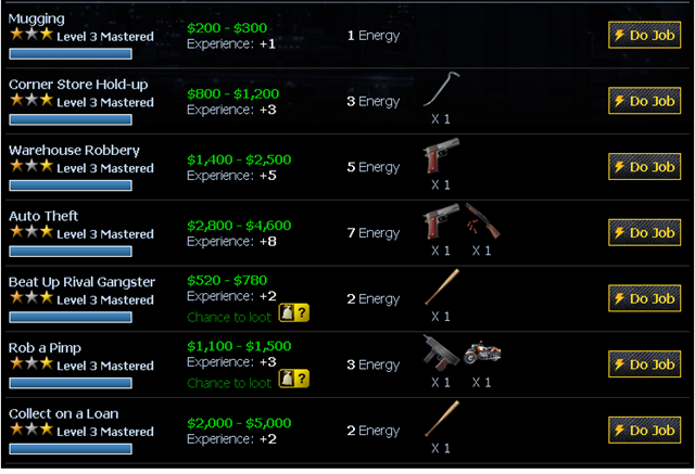 If you’ve been playing Mafia wars at all (I blame Jeff and Aviva for asking me to join) You will notice there are tiers of skill-sets in the Jobs you are to pull off.