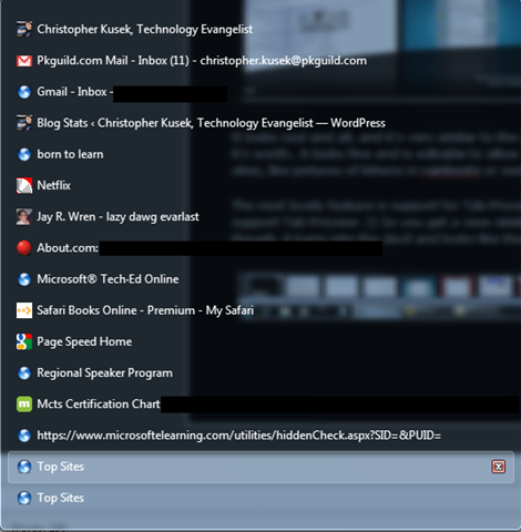 It looks cool and all, and it’s very similar to the Chrome version of a similar feature, but for what it’s worth.. it looks fine and is editable to allow you to remove sites you don’t think are ‘top’ sites, like pictures of kittens in rainboots or something. Nonetheless, a ‘usable’ feature.