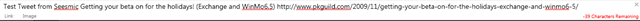 Test Tweet from Seesmic Getting your beta on for the holidays! (Exchange and WinMo6.5) http://www.pkguild.com/2009/11/getting-your-beta-on-for-the-holidays-exchange-and-winmo6-5/