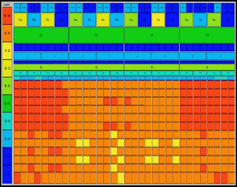 The little chart above is a basic breakdown of what you can very easily realize. Those little images are called “HEAT Maps” If you can see the little legend on the left, the more RED something is, the more busy it is which means your disks are getting hit pretty hard (Notice how for the most part all of disks are either HOT or very HOT)