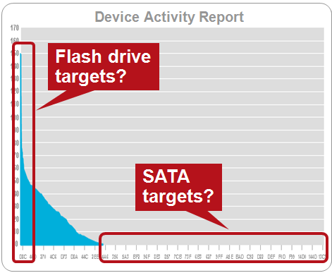 What would have been even sweeter is if this example had SATA in the mix as well – Because then we’d have the question of what should get shifted from where to where! Take a look at this pretty straight forward workload chart showing which LUNs are more active than others