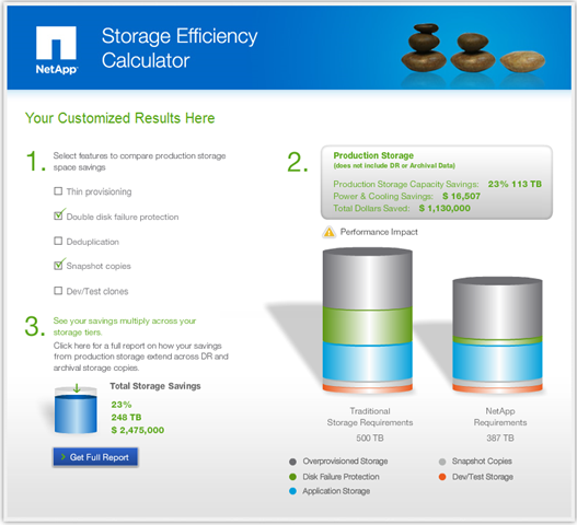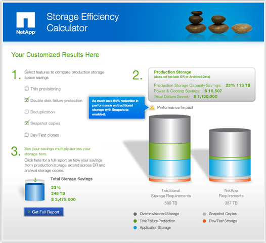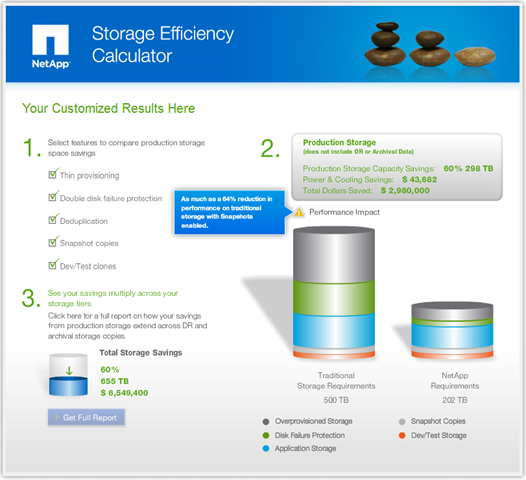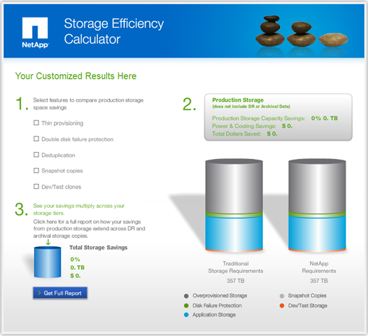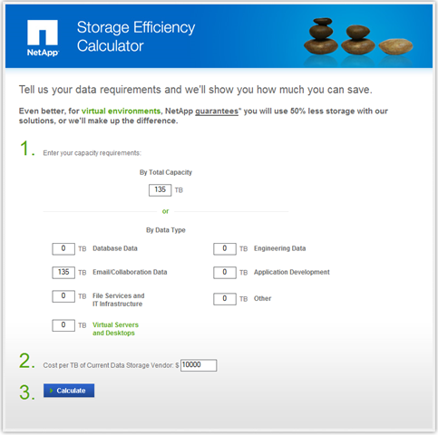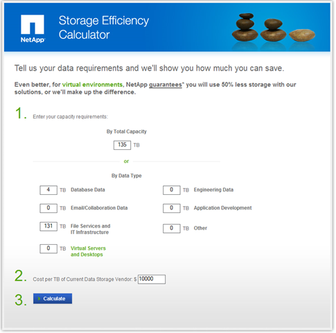 This guarantee is based on standard out-of-the-box configurations. Let us show you how to configure your unified storage to get even more efficiency. Try our capacity calculator today.