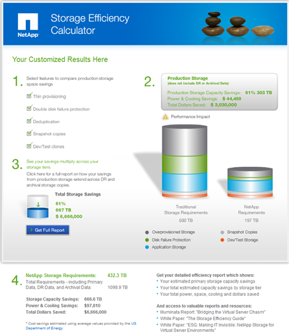 If for some unlikely reason the capacity calculator does not demonstrate that EMC is 20% more efficient, we’ll match the shortfall with additional storage. That’s how confident we are.