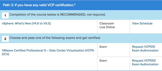 BAM! Right there it says, if you have a valid VCP Certification* – You can just go on ahead, request authorization and take your exam! Bam, done! No problem!  This is very similar to what it was back in November, minus the *.