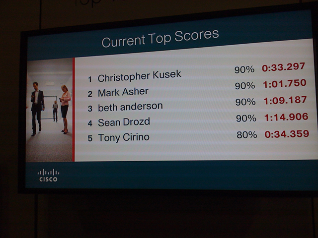 Here I am, at TechEdNA09, walking around the Partner part of the floor and I come across the Cisco Booth “Hey, want to play our game? Just answer a few questions and you could win a Flip Mino Ultra Camera!” I’m always game, for well, playing a game so I definitely took the opportunity to try to play. For those of you not familiar with this game, it’s a basic touch screen of a question and 4 selections (A, B, C, D) you have to choose from.