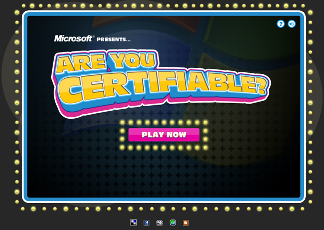 Step 1: Play the “Are You Certifiable?” online game and get a screen name. You’ll include this screen name in your entry. After you submit your entry, you can keep playing to try to get the highest score possible. You can play as many times as you’d like before 9 a.m. Pacific Time on April 6.