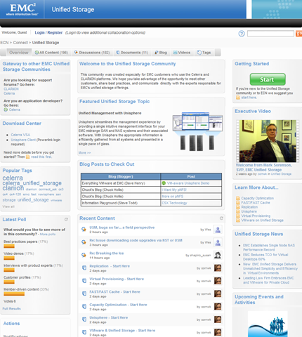 I recently was given insight into something which was up and coming (and well, clearly out at this point :)) The EMC Unified Storage Community!