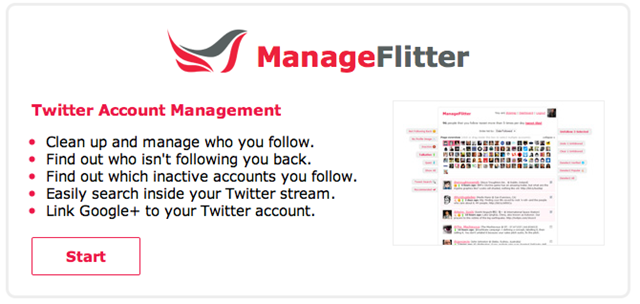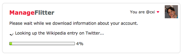 Manage Flitter Start  ManageFlitter Connect to Twitter ManageFlitter is indexing your contacts!