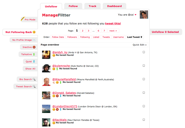 ManageFlitter unfollow those not following you! Check baby check baby 1-2-3 You have unfollowed people, OMG THE HORROR!!!