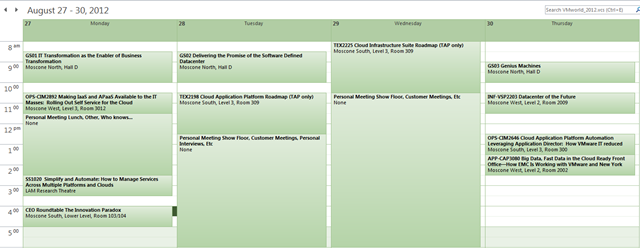 • Networking is KEY.     Chances are if you want to do something, someone there has already done it before and can share their experience.   Some people are sad and lonely and are looking for others to talk to about how they backup their Virtualization environment.   Let’s be honest.  You’re all geeks in one way or another and you have your particular area of focus, of interest, of… whatever.    And there’s bound to be at least a dozen more of you there who share the same interests, so it’s important to FIND each other, Exchange business cards and “buy” each other a drink at some Vendors Party    – Not sure who’s doing what you want, or on and so forth? Find ME. I know all of you and can help ‘matchmake’ you SDN guys with you other neurotic vCloud guys. :)