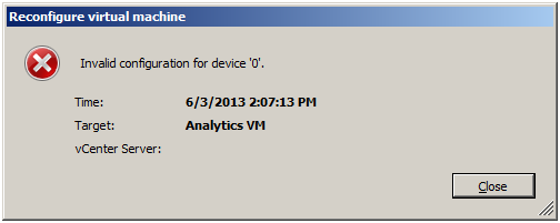 Reconfigure Virtual Machine; Invalid Configuration for device '0'