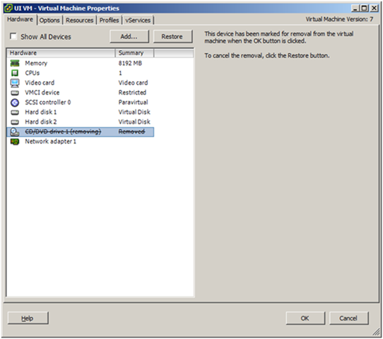 Change vCOPS Cd Drive to Client Device from ISO file With vCOPS vApp Powered Down - Choose to remove the CD Drive