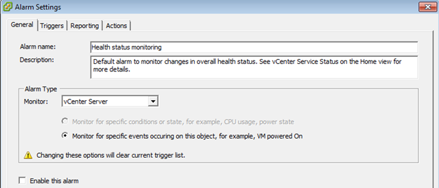 Disabling alarms in vCenter and ignoring “Health Status Monitoring” Errors in vCOPS!