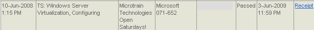 For those of you took the beta exam of TS: Windows Server Virtualization, Configuring (071-652) you can now login to Prometric and find out your score!